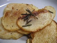 あがったら油を切ってもう一つのフライパンで4つほどにちぎったローズマリーと共に炒めていく。