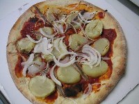 ジャガイモ、アンチョビを並べて玉ねぎを散らします。