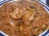 3.煮込みます。 その間にオリーブオイルをしいた鍋にトマトソース、シイタケ、しめじ、玉ねぎを入れ煮込んでいく。 ↓ 具材が煮えてきたらシナモンを入れ、塩コショウで味を調える。 更に焼き上がったら鳥の胸肉も入れる。